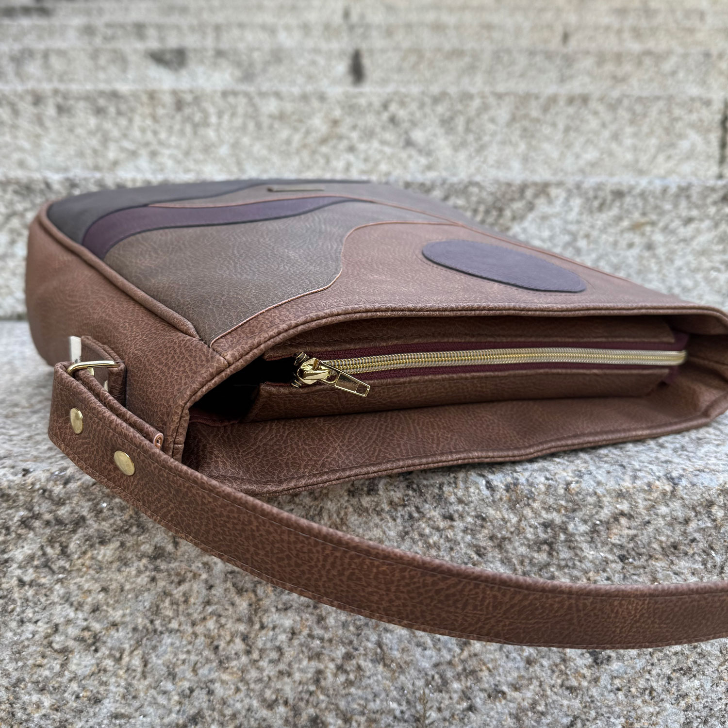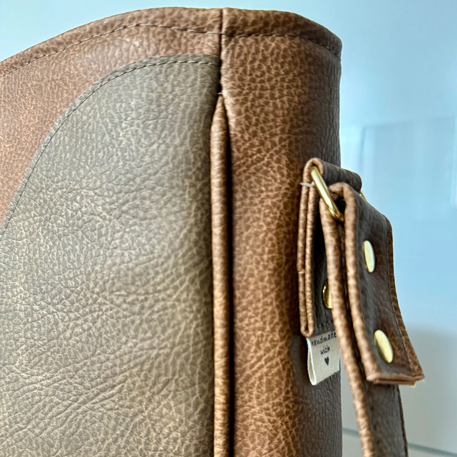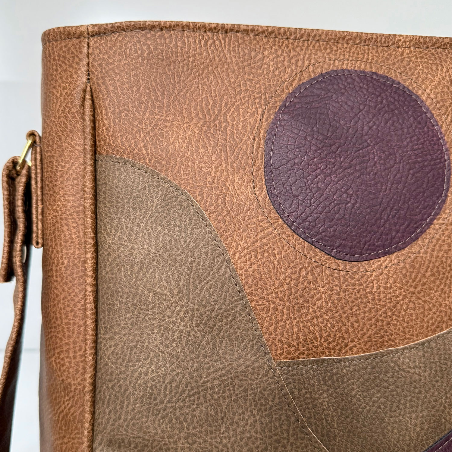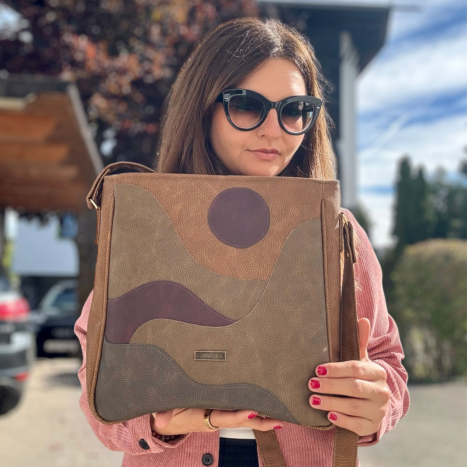 Diese tolle Tasche mit einem applizierten Sonnenuntergang hat die liebe Simone Donhauser gezaubert. Dafür hat sie alle Farben des Kunstleder genarbt verwendet. Die Farben passen perfekt zusammen und die strukturierten Oberfläche des Kunstleders sorgt für einen perfekten Vintagelook.