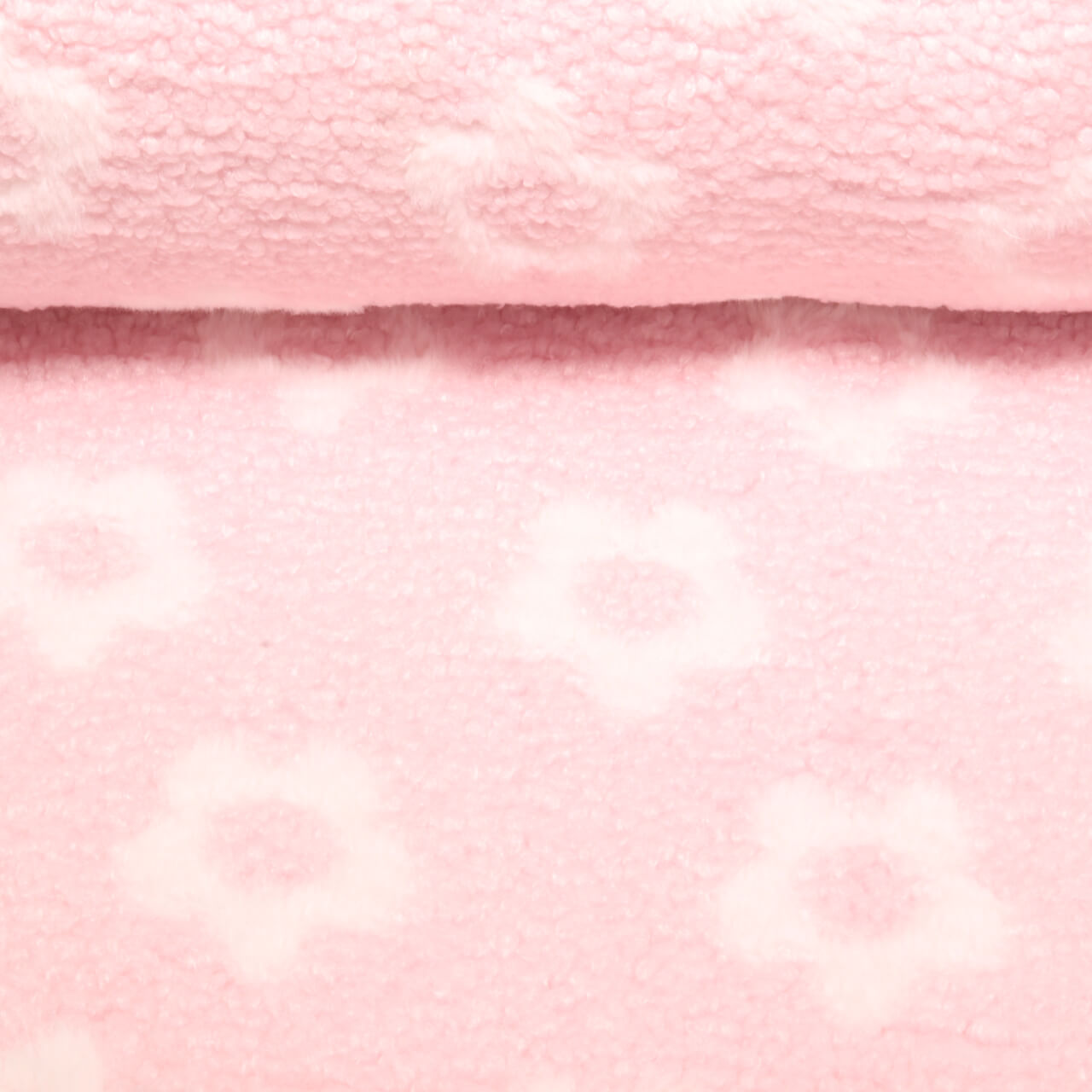 Teddyfleece - Jacquard Blumen Rosa Weiß
