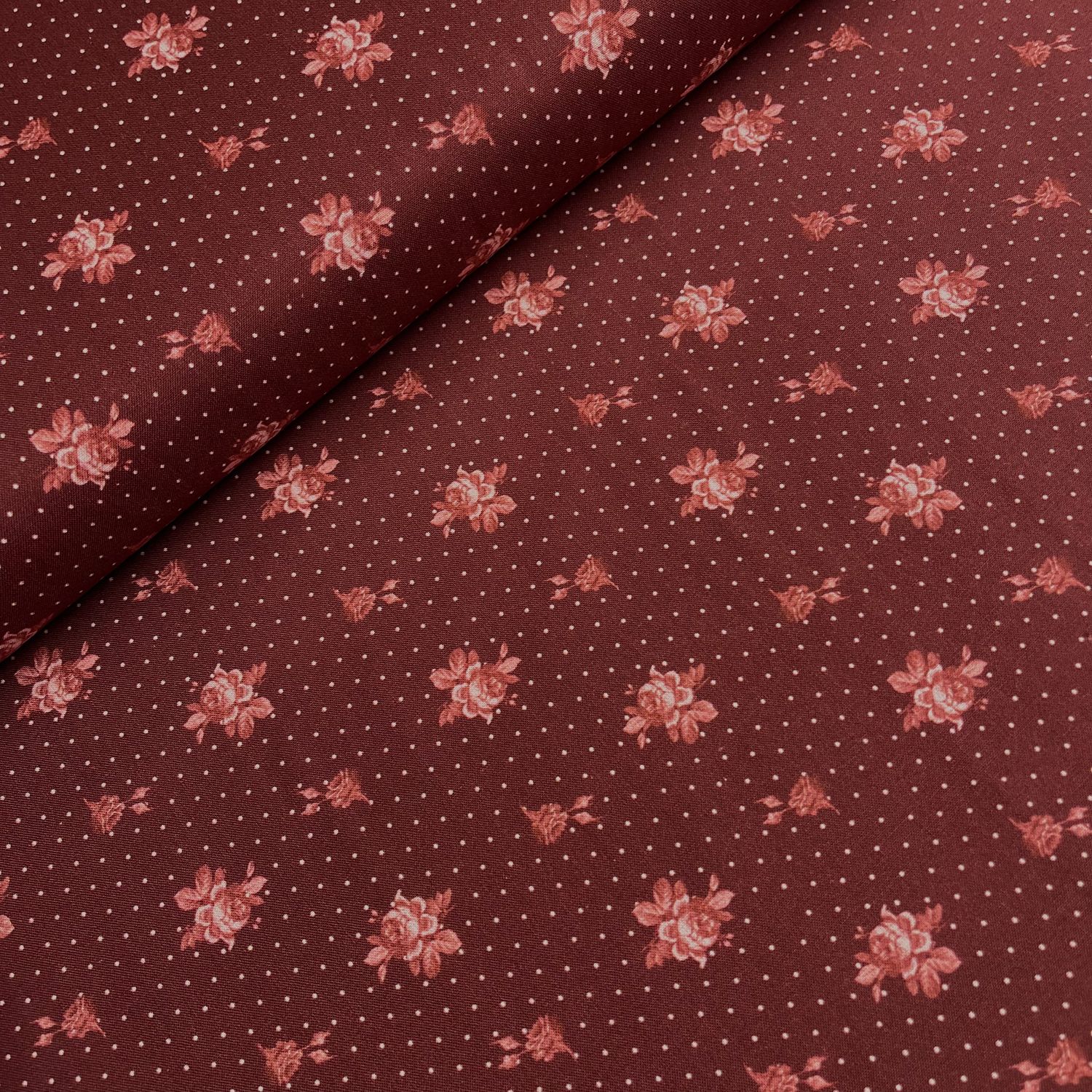 Trachten Serie Baumwolle Adrie Punkte & Röschen Weinrot