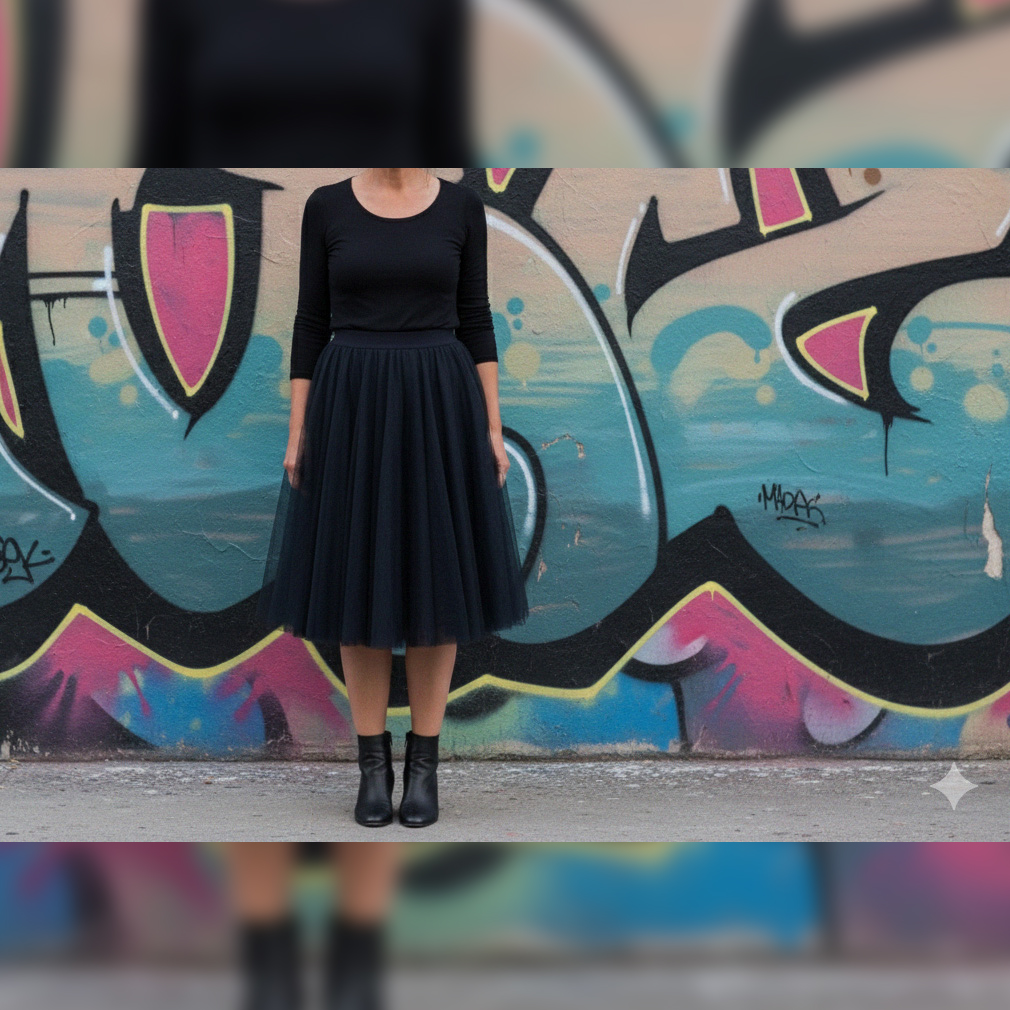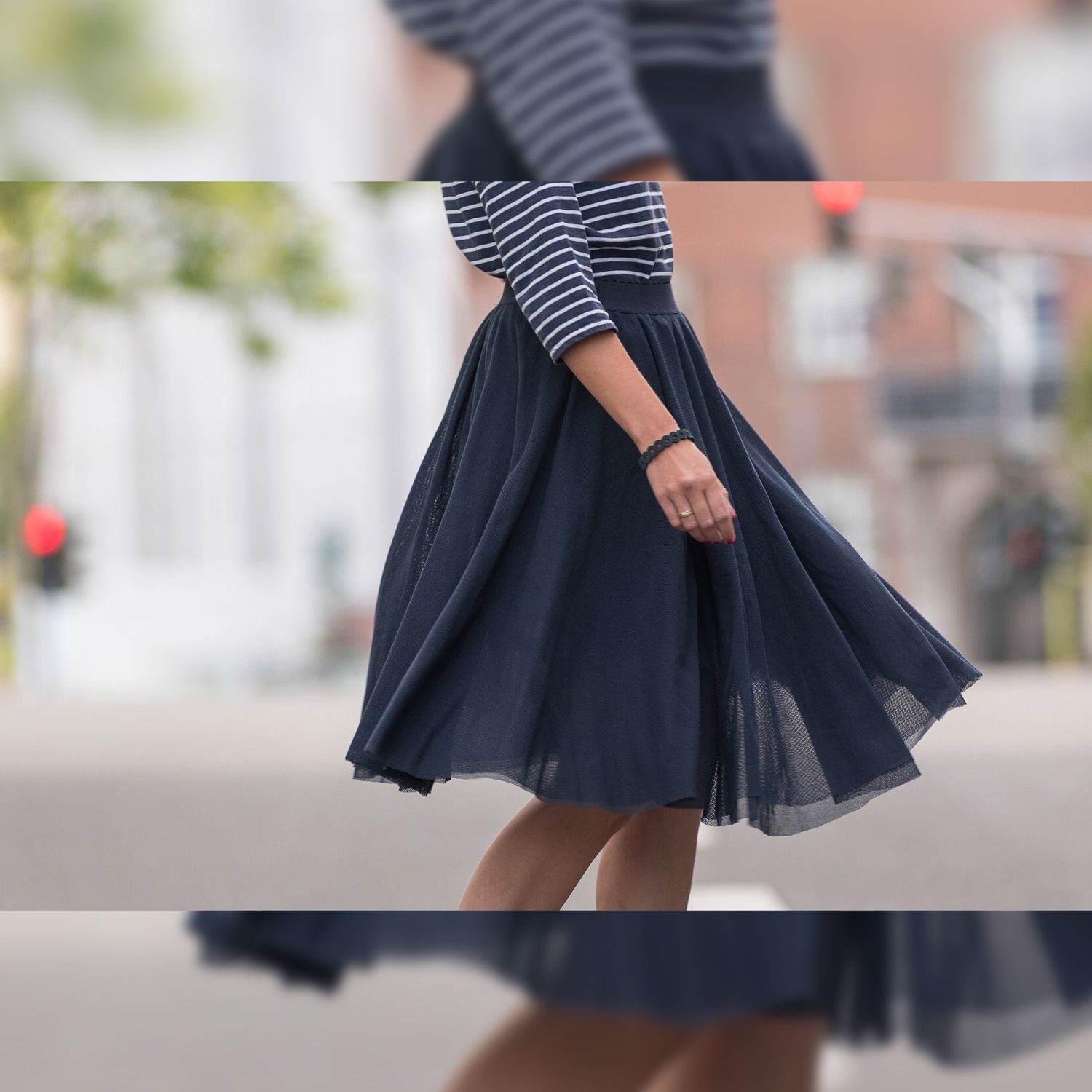 Eleganter Tüllrock. Das Schnittmuster »LaTulla Skirt« ist der perfekte Tüllrock für jede Gelegenheit – verspielt, elegant und dabei absolut alltagstauglich. Er besteht aus zwei Lagen Tüll und einem kurzen Futterrock aus Jersey, der garantiert für Blickdichte sorgt. Der breite Bund aus sichtbarem Gummiband setzt einen dekorativen Akzent und sorgt gleichzeitig für einen angenehmen Sitz. Für einen besonders eleganten Look empfiehlt sich weicher, fließender Tüll, der den Rock leicht und mädchenhaft fallen lässt – ideal für festliche Anlässe oder kreative Outfit-Kombinationen im Alltag.