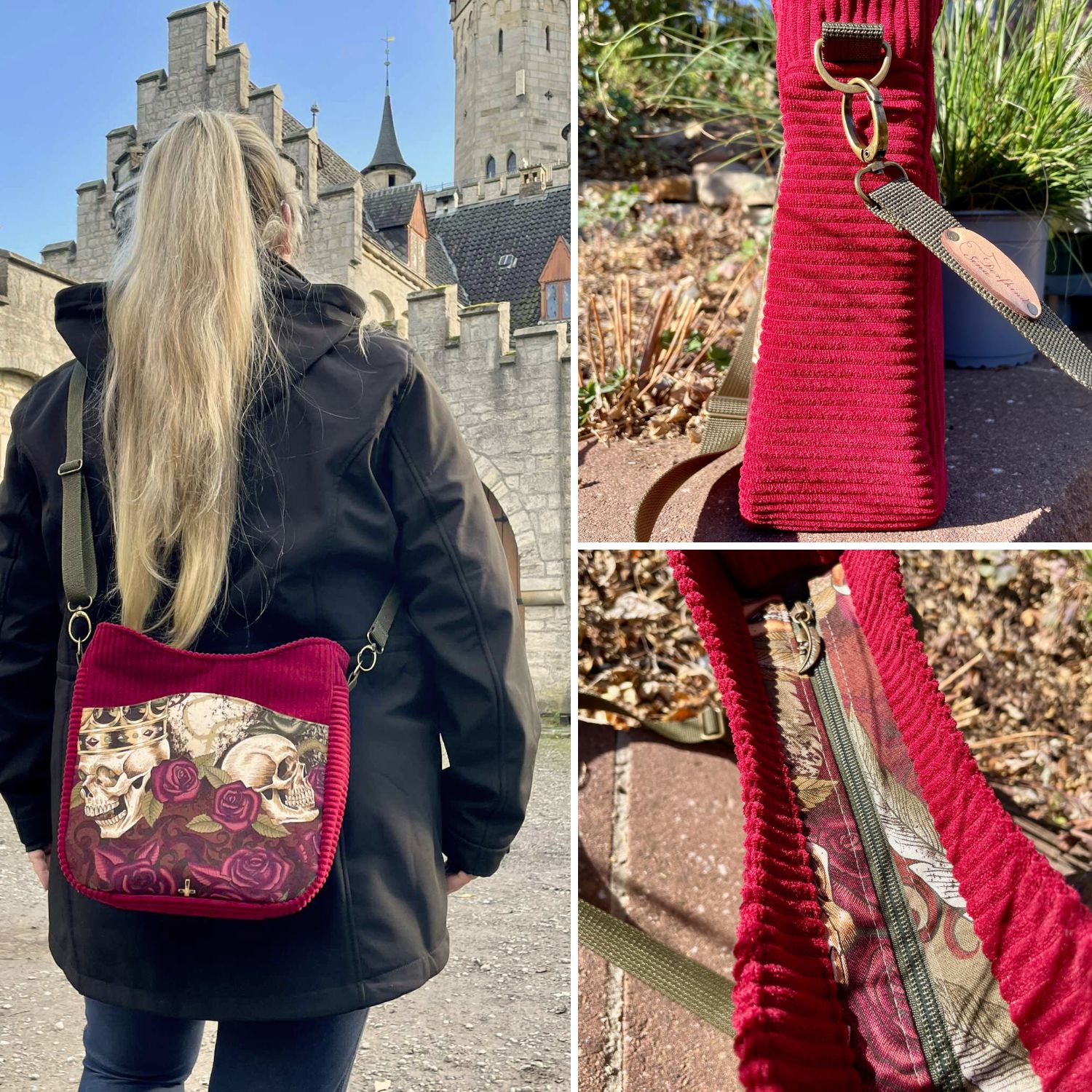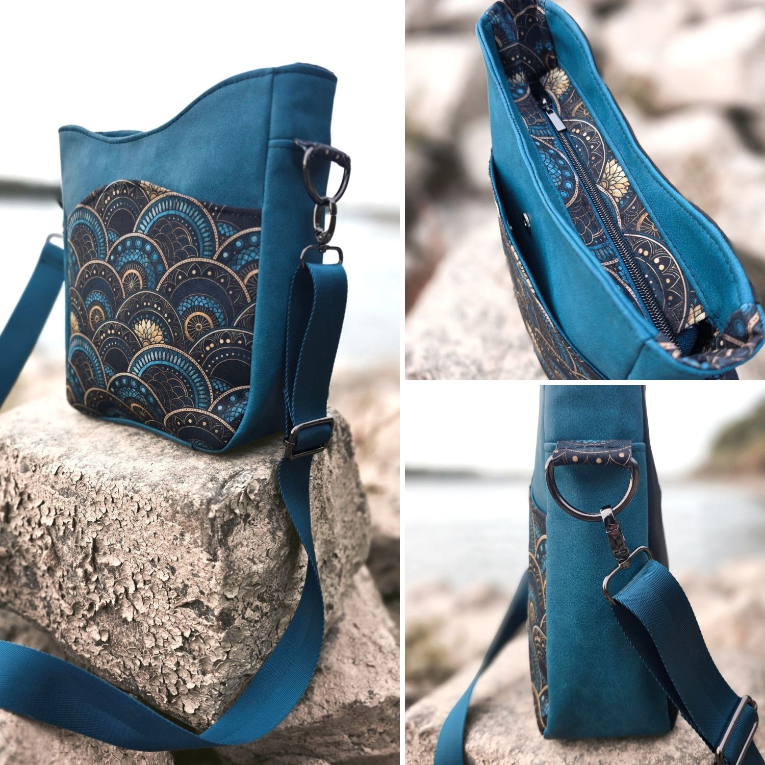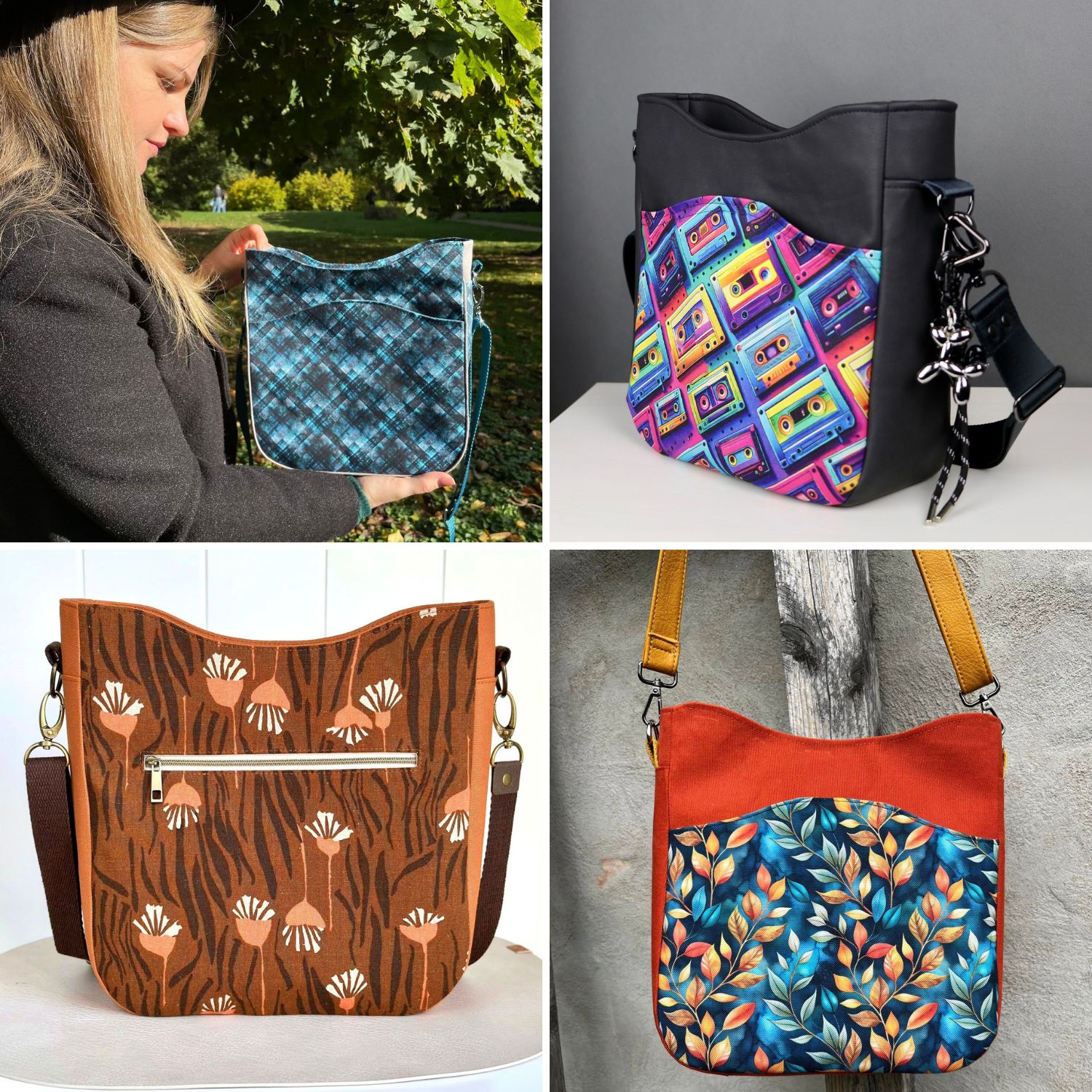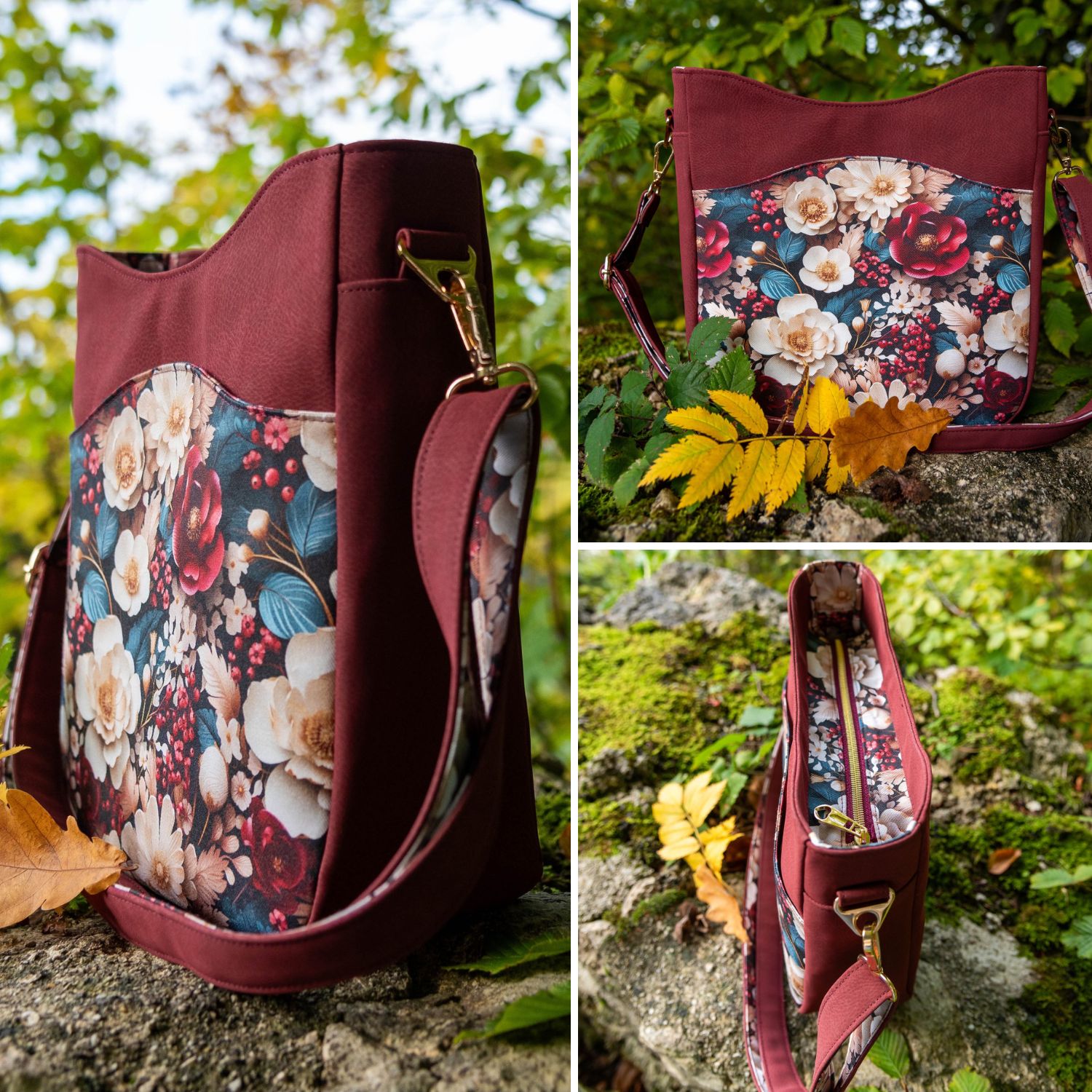 Die Umhängetasche Sarah ist ein kreatives Nähprojekt für alle, die elegante Details lieben. Mit 25 cm Breite, 27 cm Höhe und 9 cm Tiefe, die sich nach oben hin verjüngt, hat sie die perfekte Größe für den Alltag. Besonders charmant ist die geschwungene Linienführung. Der Reißverschluss sitzt etwas tiefer, wodurch die Form noch spannender wirkt. Auf der Vorderseite sorgt ein schön geschwungenes Steckfach mit Magnetknopf für das gewisse Extra, während das praktische Reißverschlussfach auf der Rückseite zusätzlich Stauraum bietet. Sarah ist die ideale Tasche, um mit Stoffen zu spielen und deine eigene kreative Handschrift einfließen zu lassen – romantisch, klassisch oder ausgefallen.