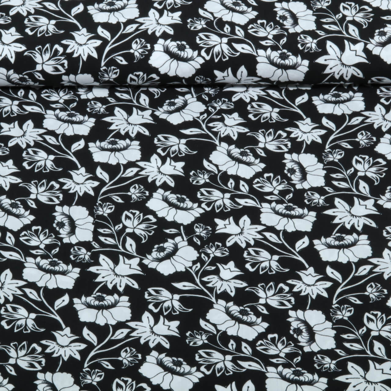 Viskose - Digital Blumen Schwarz Ecovero™