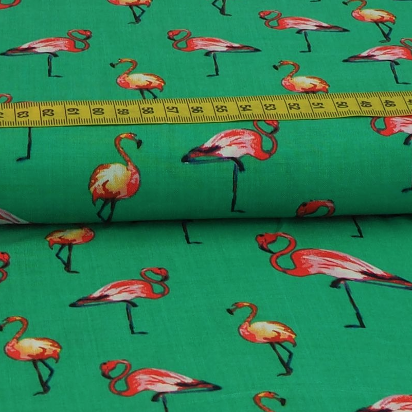 Viskose Blusenstoff Flamingos auf Grün