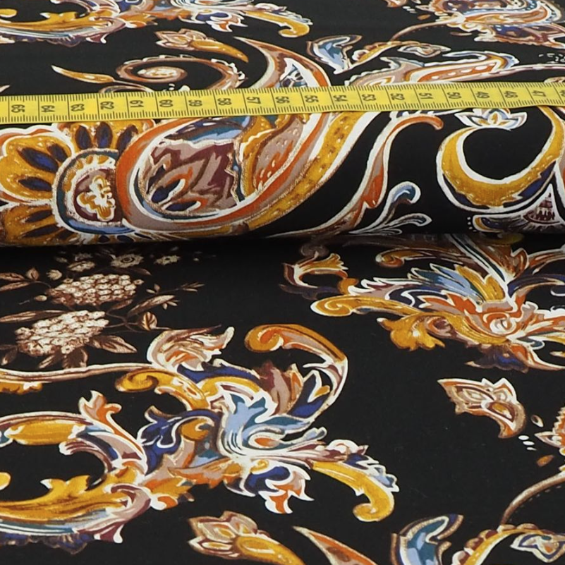 Viskose Blusenstoff Mixed Flower auf Schwarz