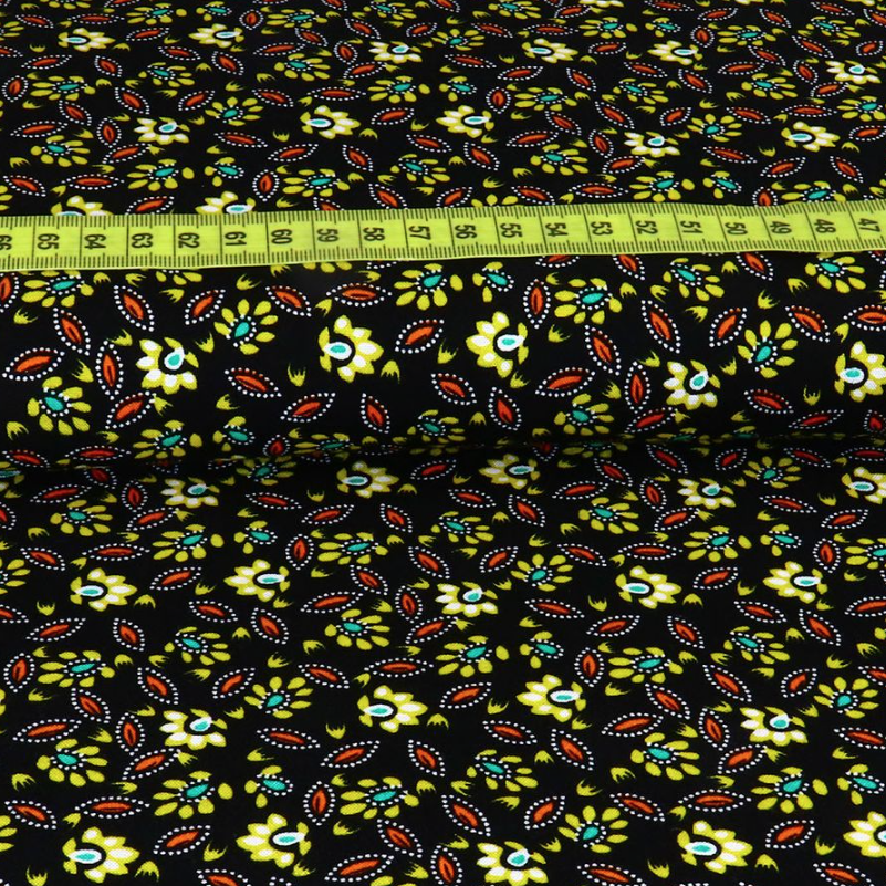 Viskose Blusenstoff Small Flowers Gelb auf Schwarz