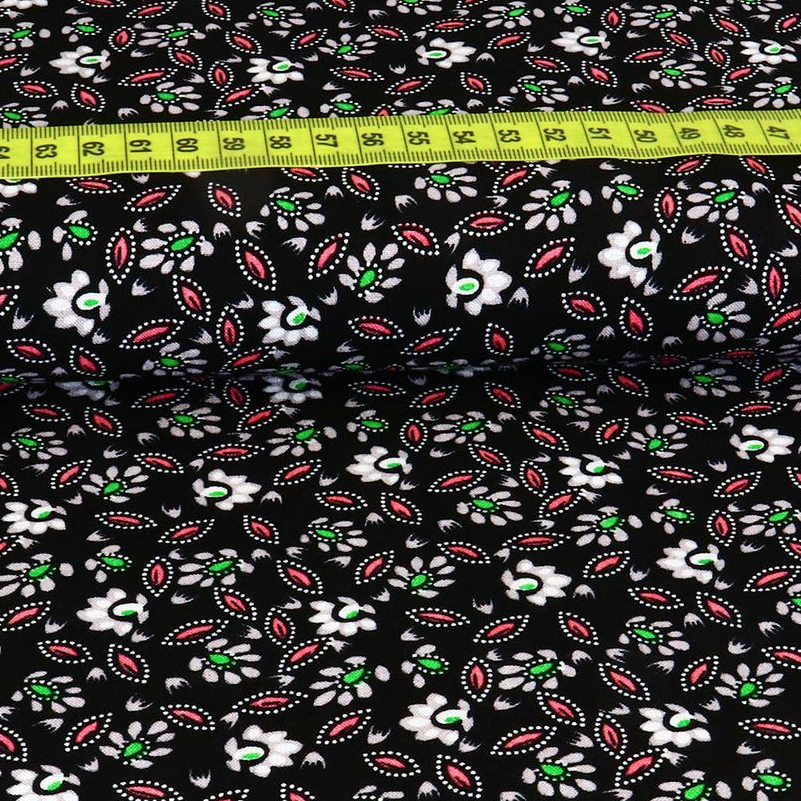 Viskose Blusenstoff Small Flowers Weiß auf Hellgrau/Schwarz