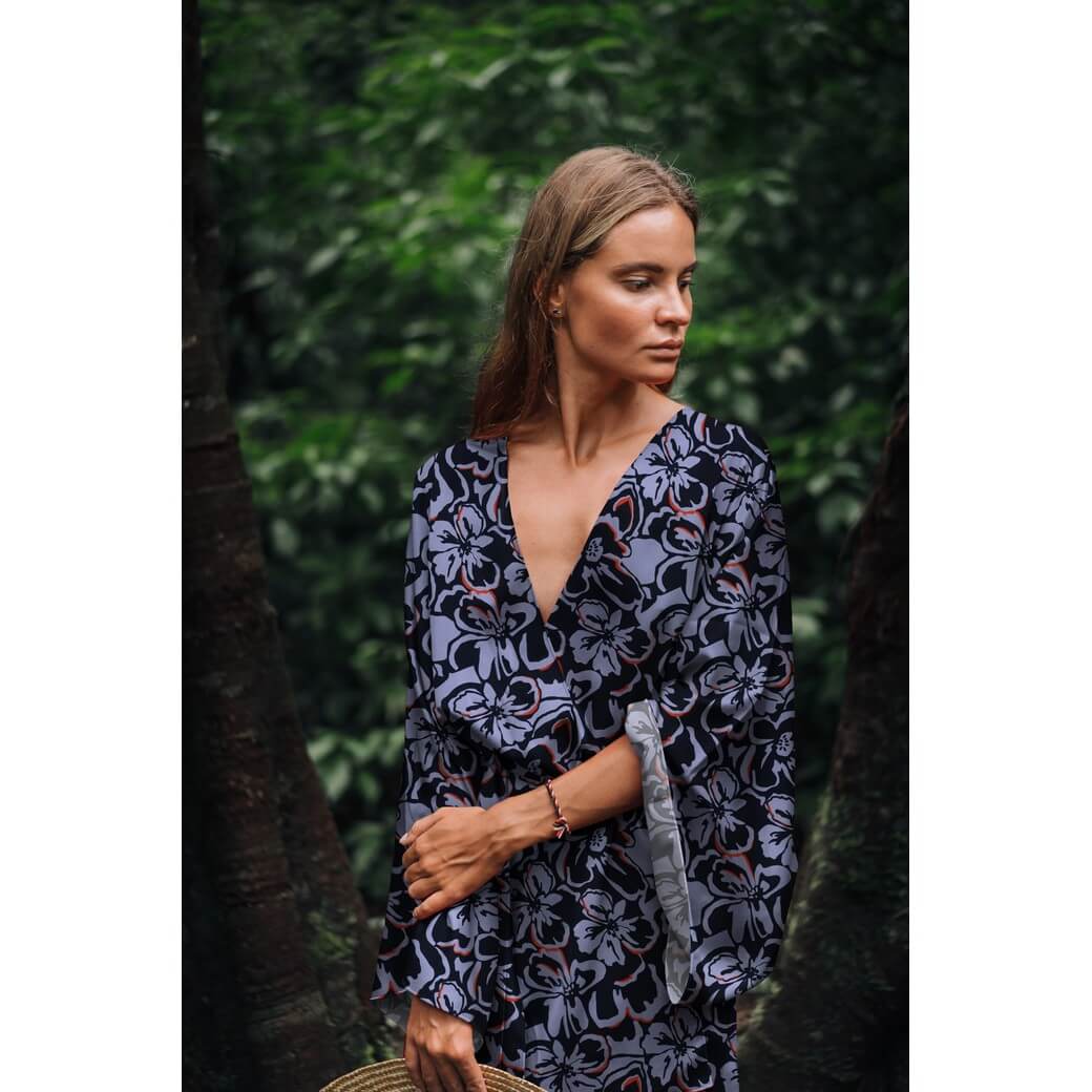 Viskose - Digital Blüten Navy Ecovero™