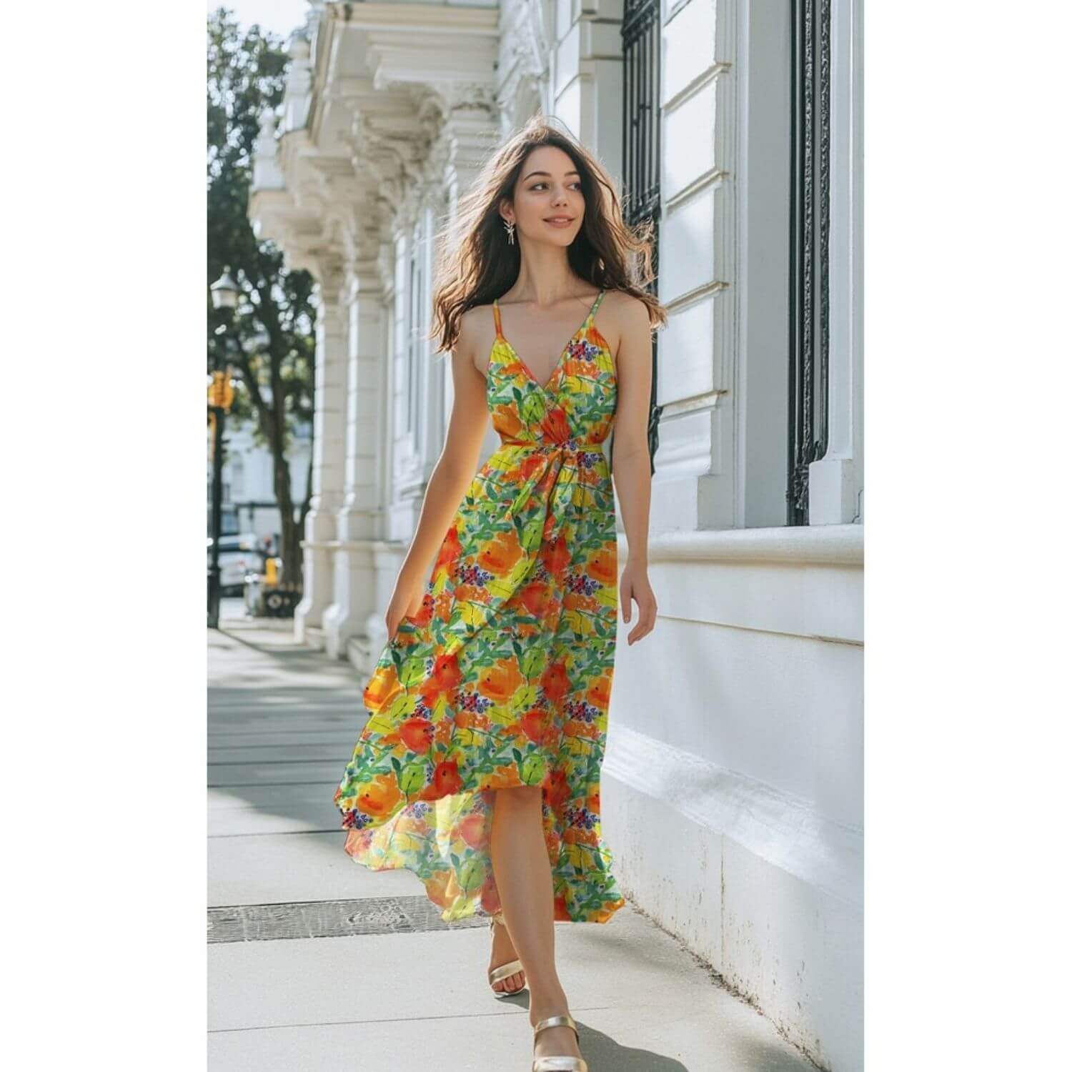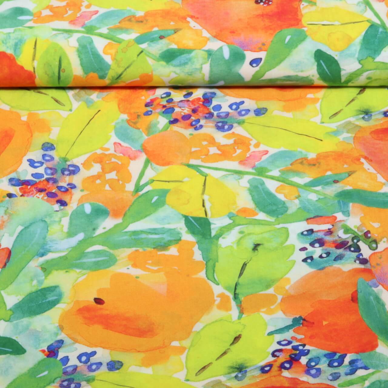 Viskose - Digital Blumen Orange