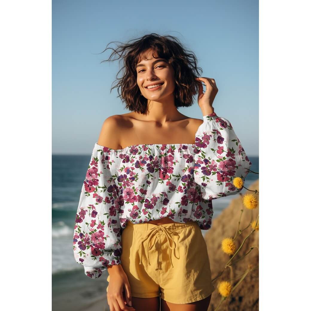 Viskose - Digital Rosenblüten Weiss Ecovero™