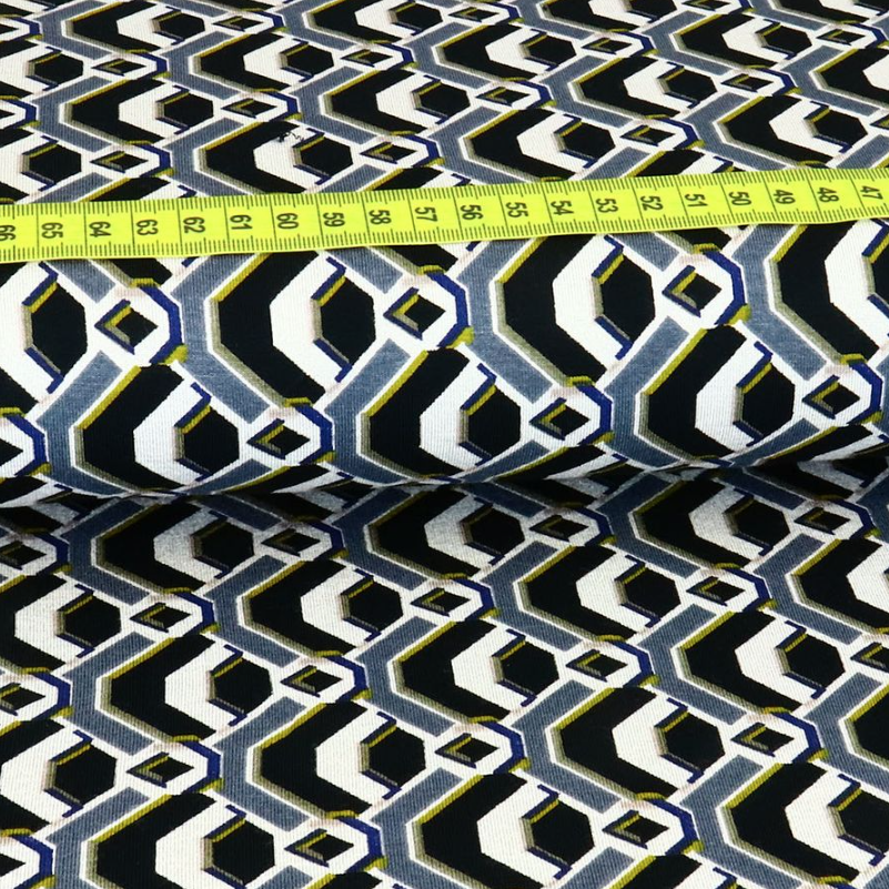 Viskose Jersey Retro Geometric Senfgelb/Grau