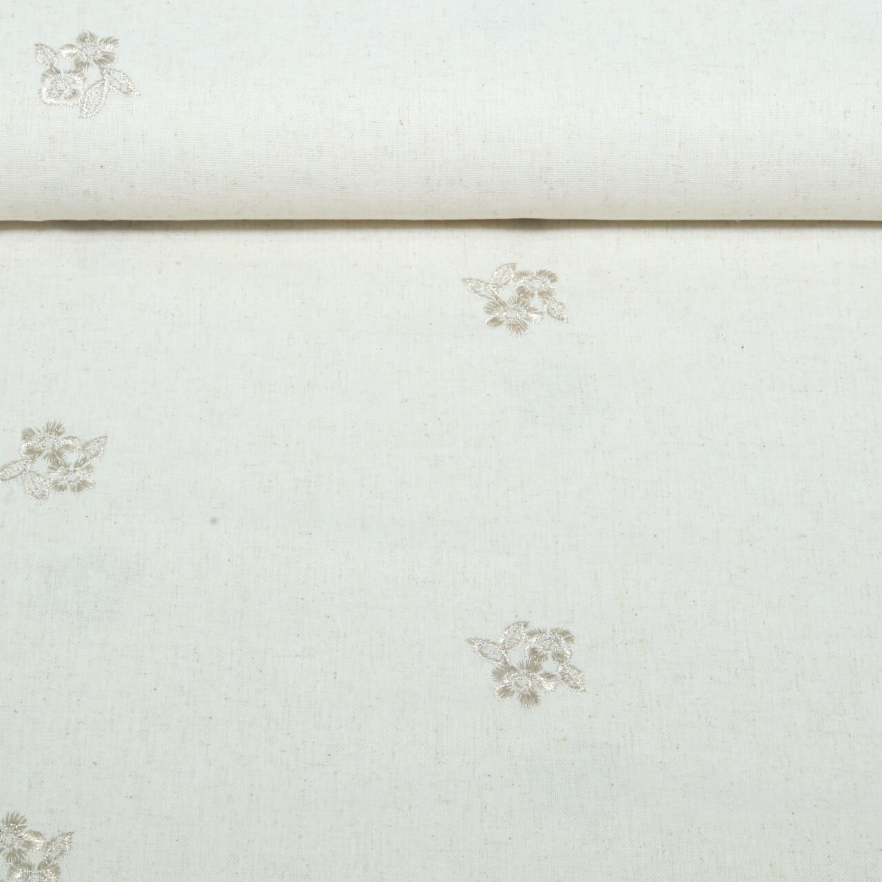 Viskose Leinen - Bestickt Blatt und Blüte Beige Gold