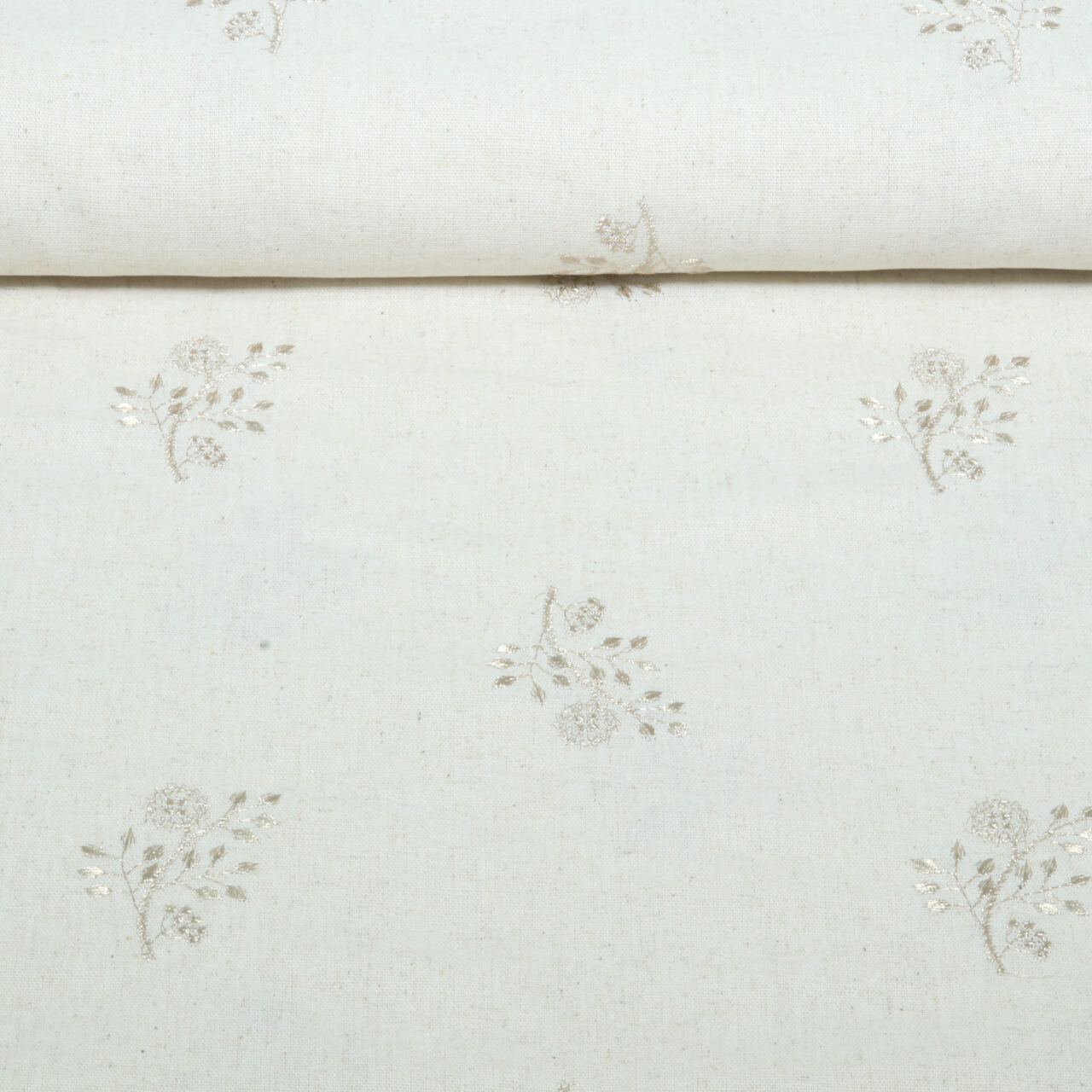 Viskose Leinen - Bestickt Blumenzweige Beige Gold