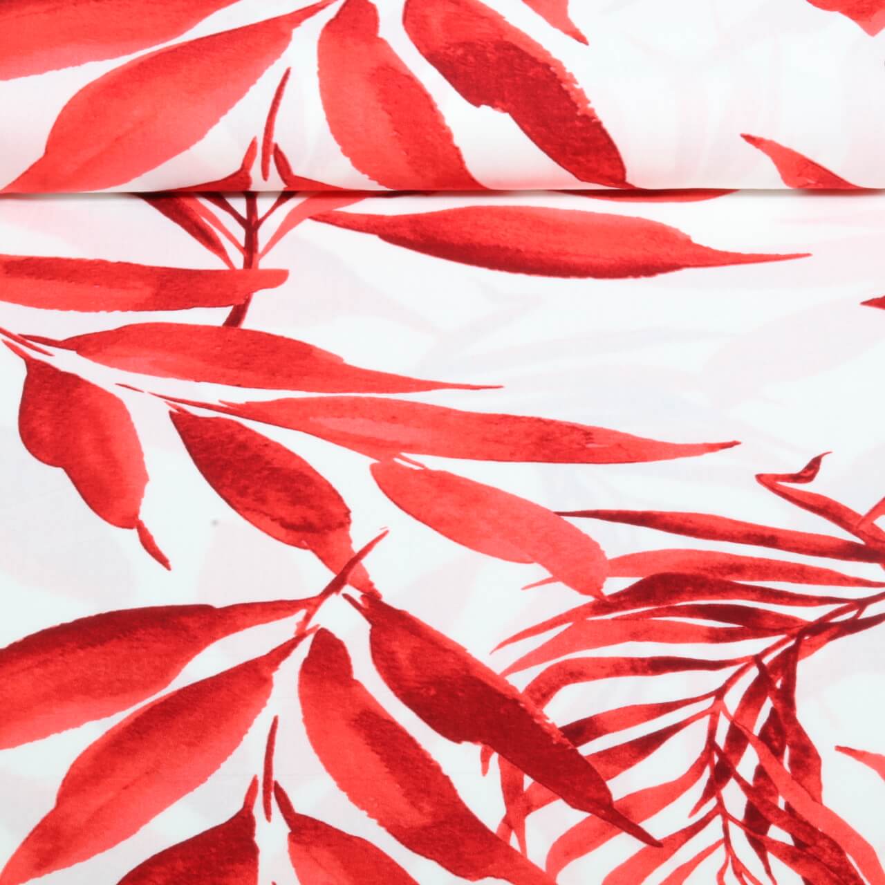 Viskose-Popeline - Blätter Weiß Rot