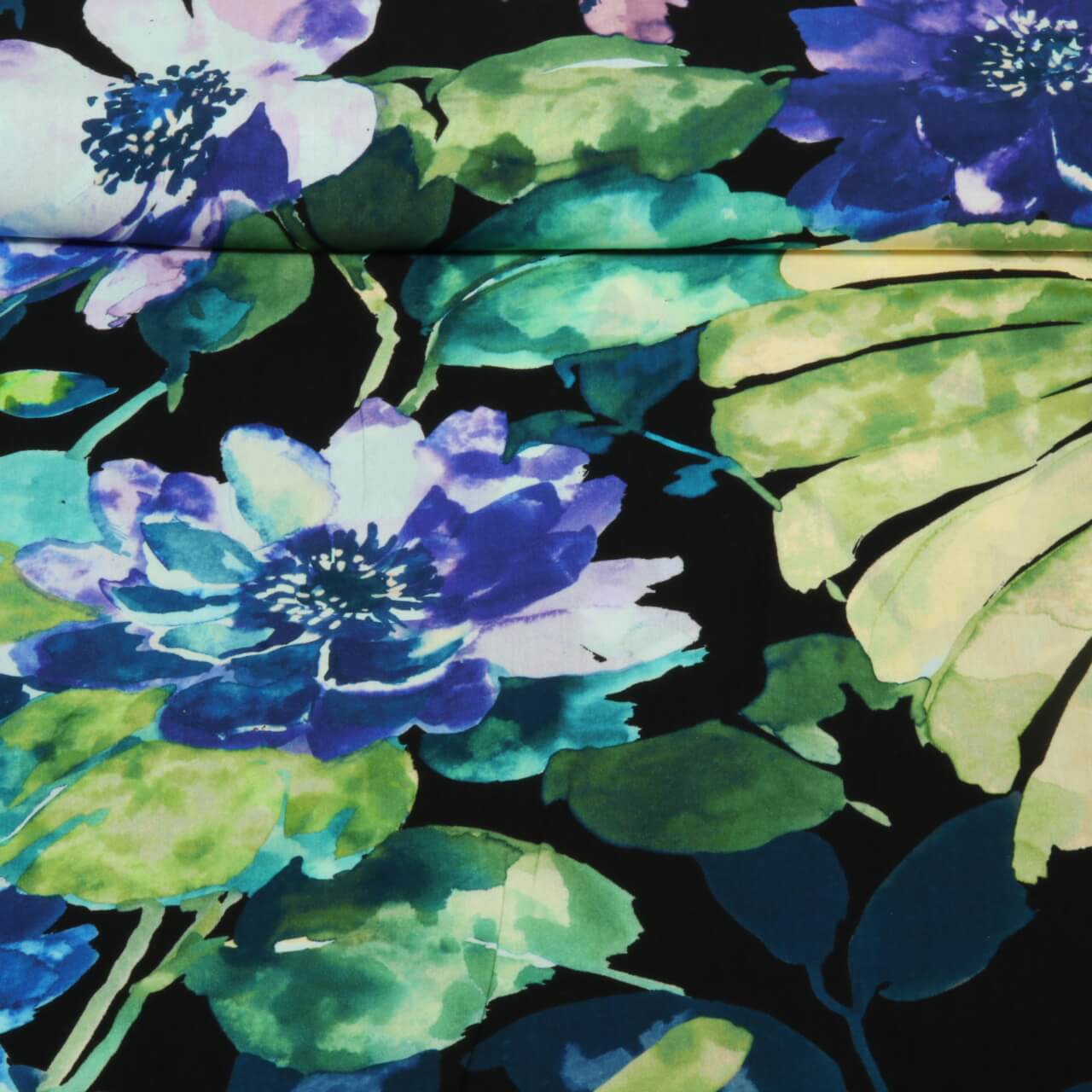 Viskose-Popeline - Digitaldruck Blüten Multicolor Blau