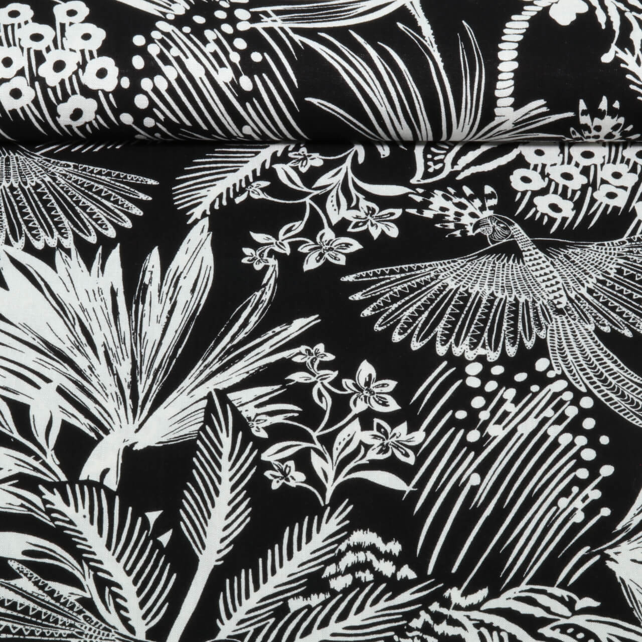 Viskose - Rayon Slub Stretch Blättermix Schwarz Weiß