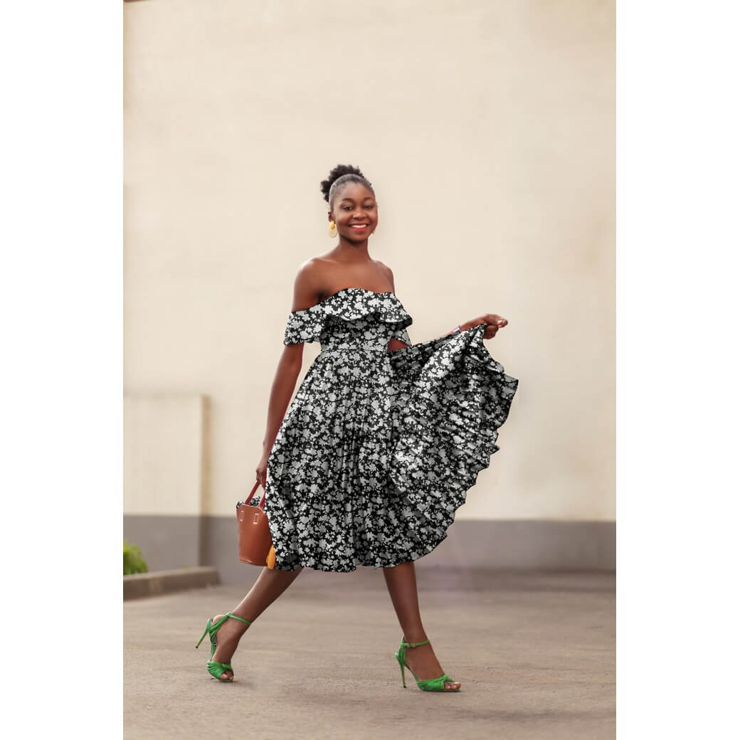 Viskose - Stretch Blumen Schwarz