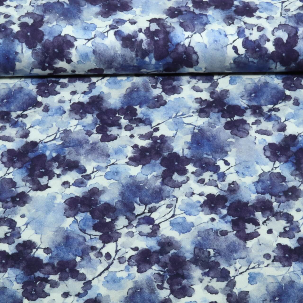 Viskose - Stretch Digital Aquarellblumen Jeansblau
