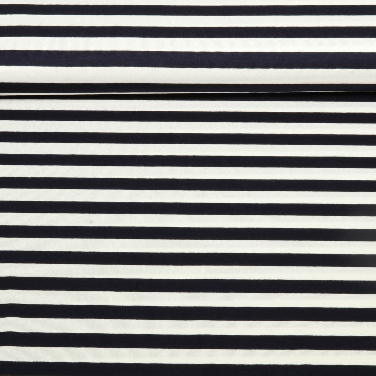 Viskosejersey - Streifen 10 mm Weiß Navy