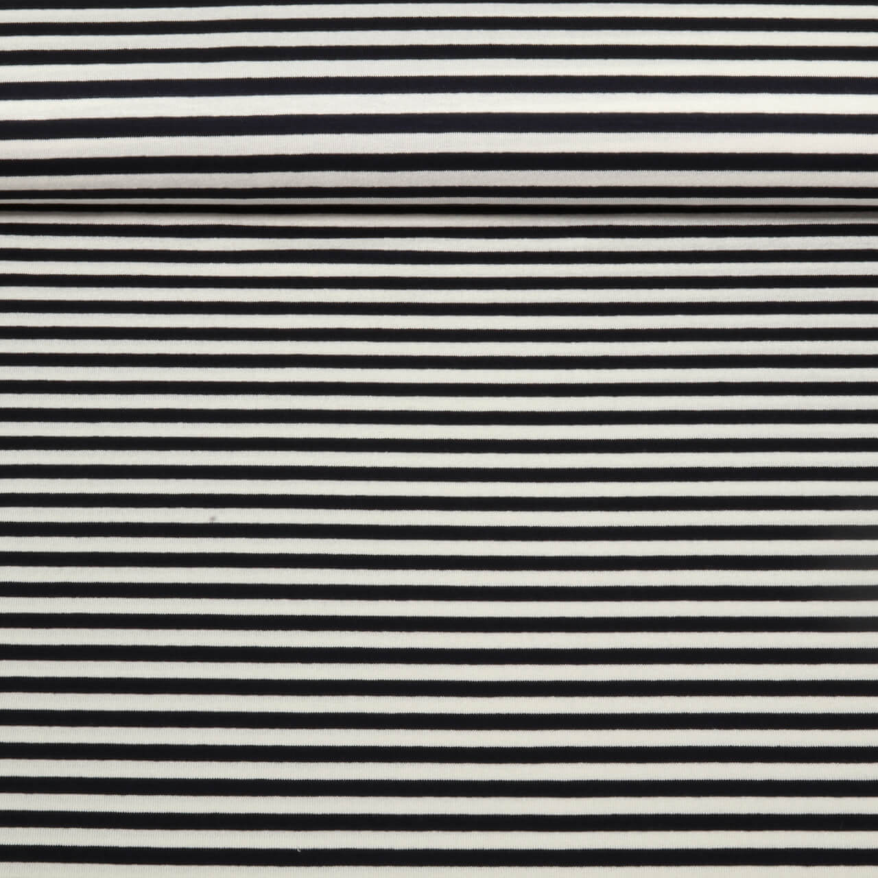 Viskosejersey - Streifen 5 mm Weiß Navy