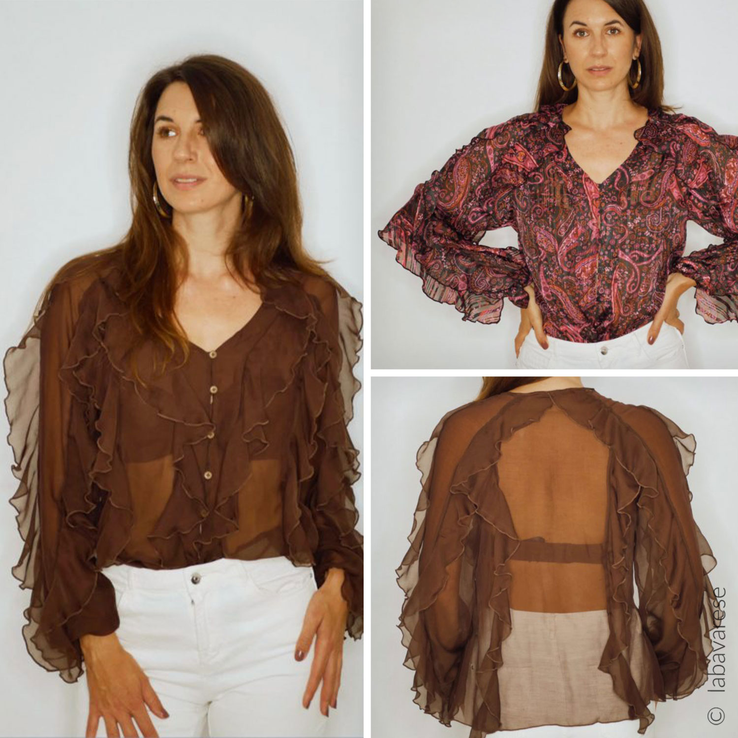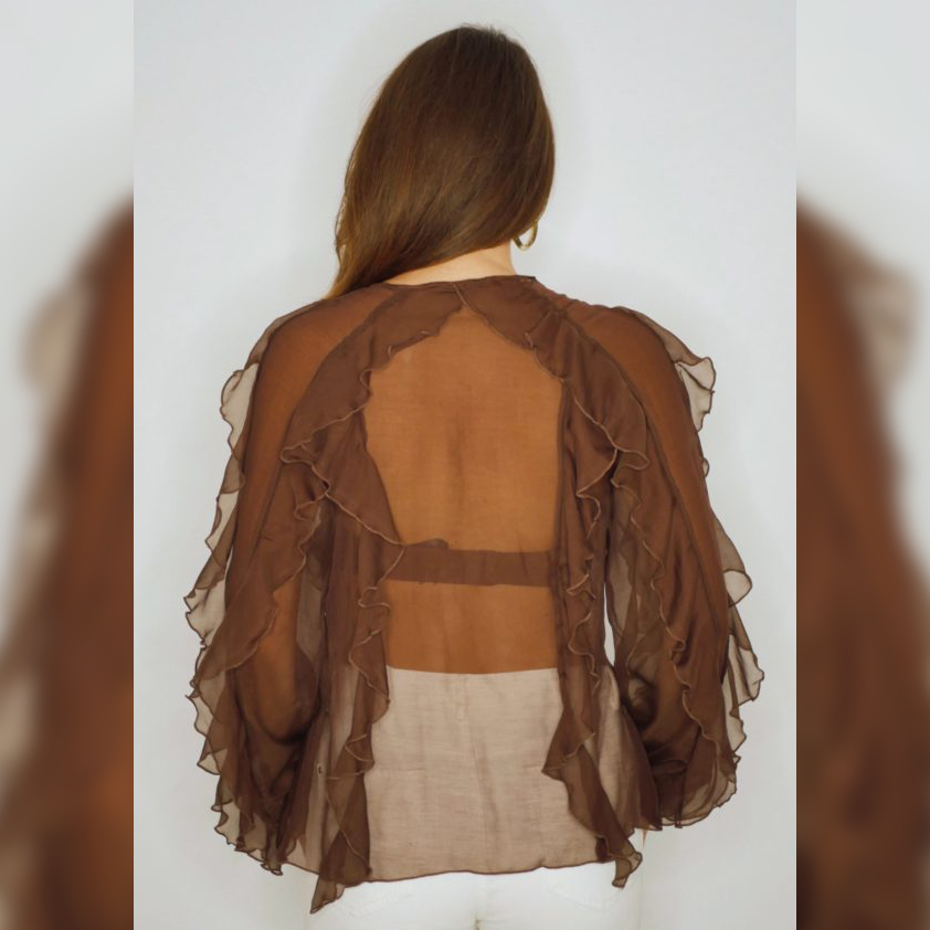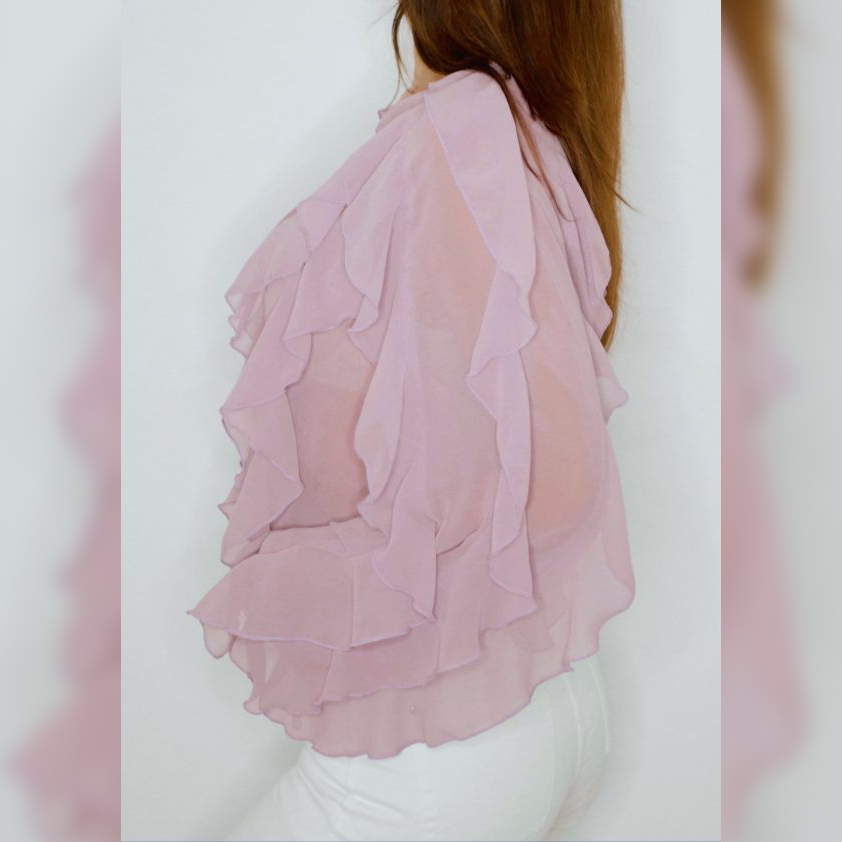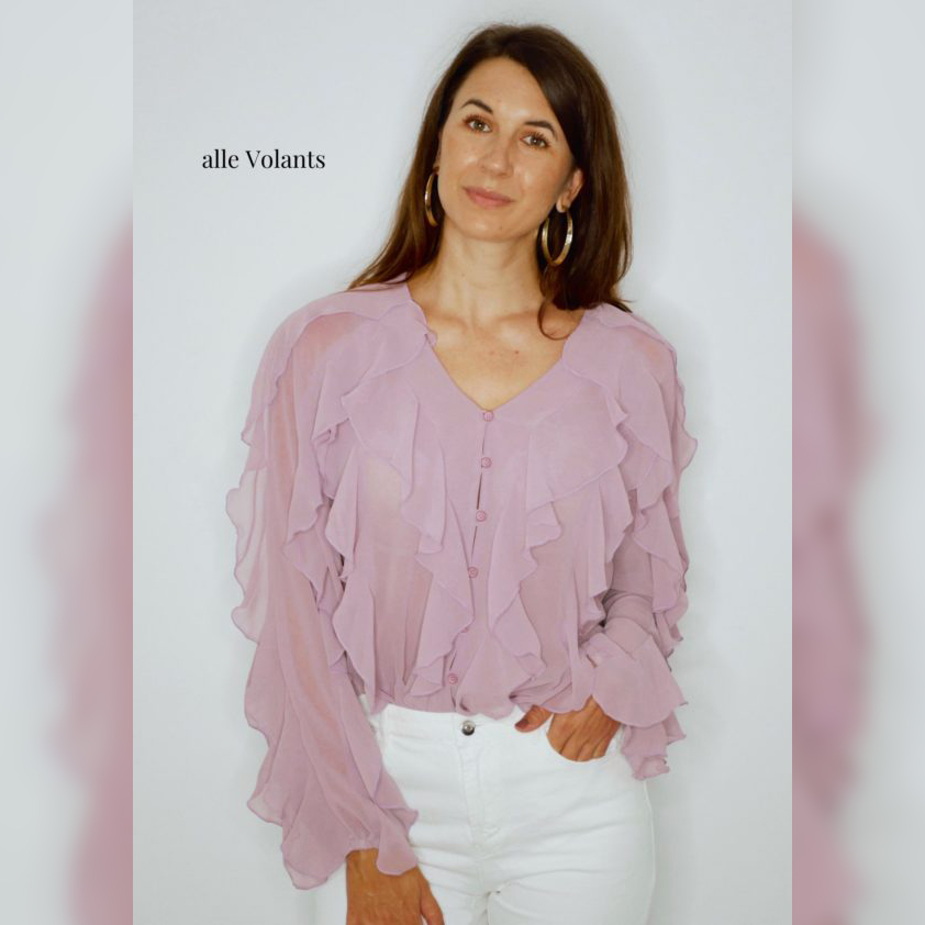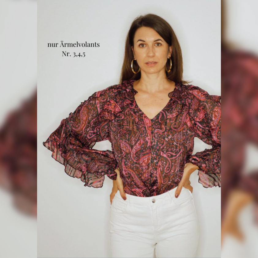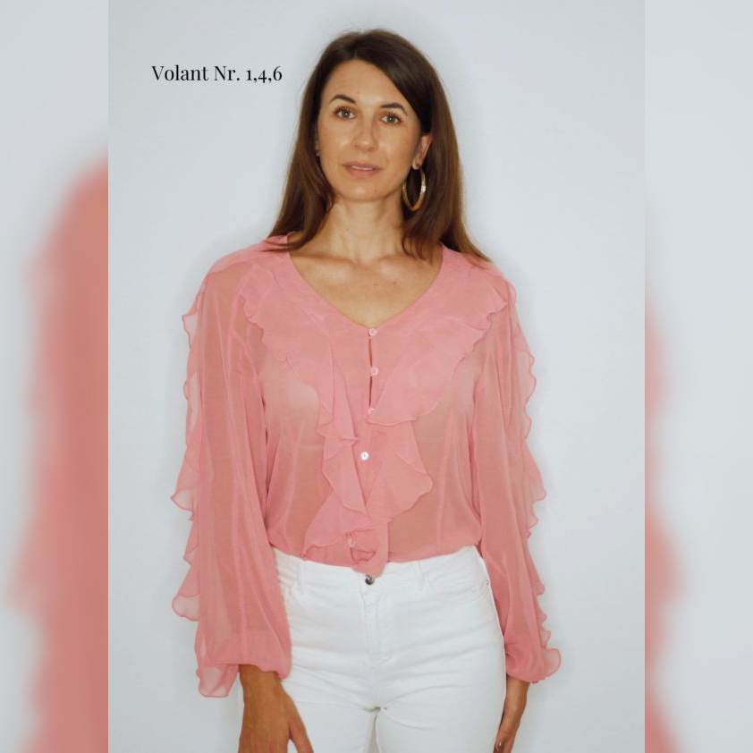 4 Volants im Vorderteil, 2 im Rückenteil, jeweils 3 an den Ärmeln