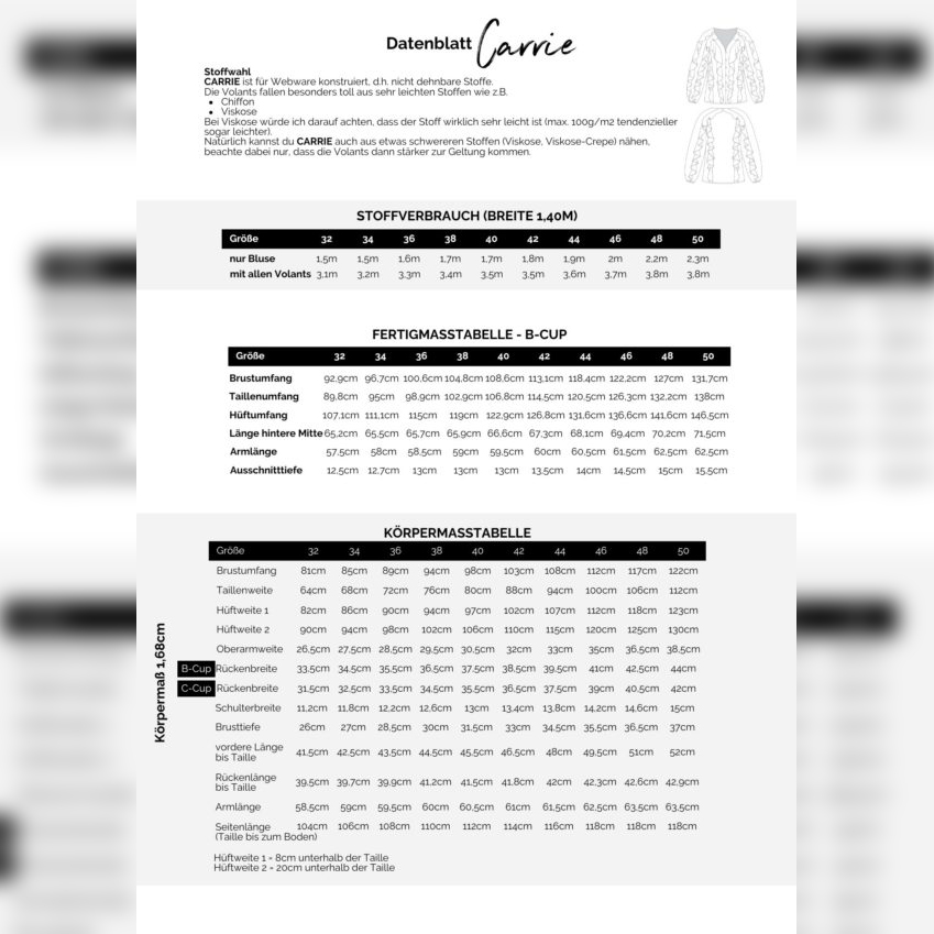 detaillierte step-by-step Bildanleitung inkl. Stoffverbrauch sowie Hinweise zum Zuschnitt, gängigsten Anpassungen und der Vorbereitung