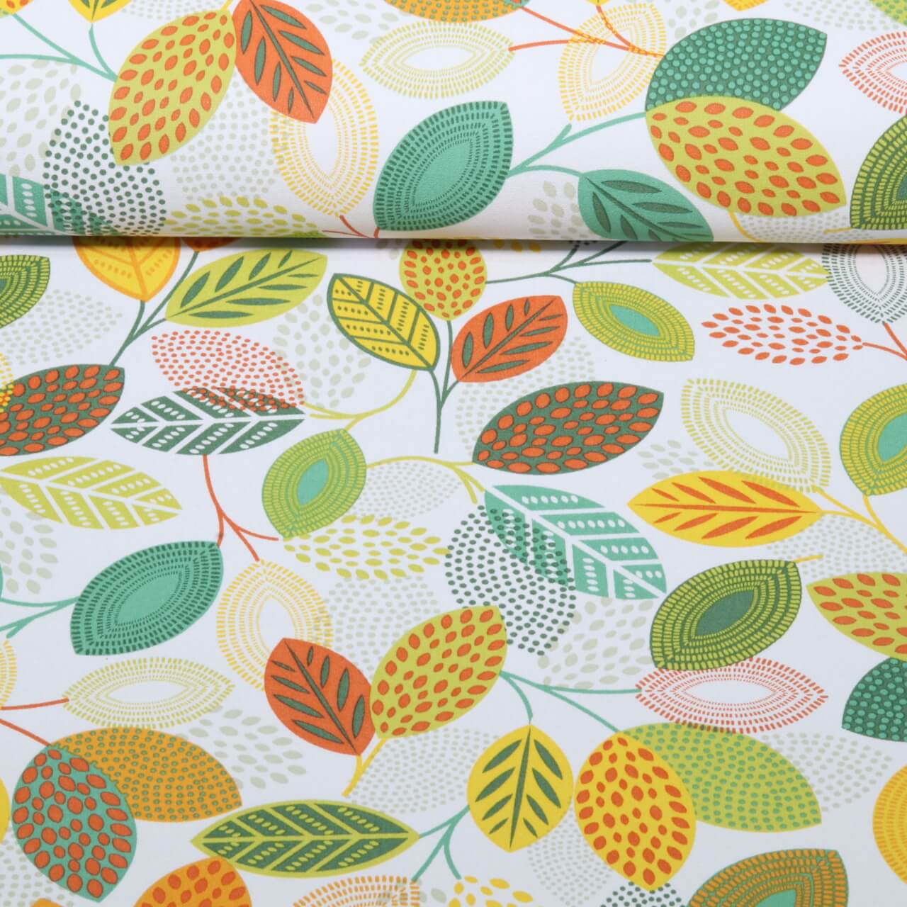 Wachstuch - PVC Bunte Blätter Weiß