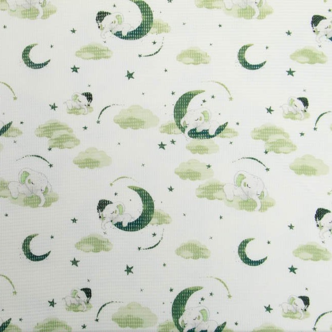 Waffel Jersey Schlafender Elefant Grün auf Creme