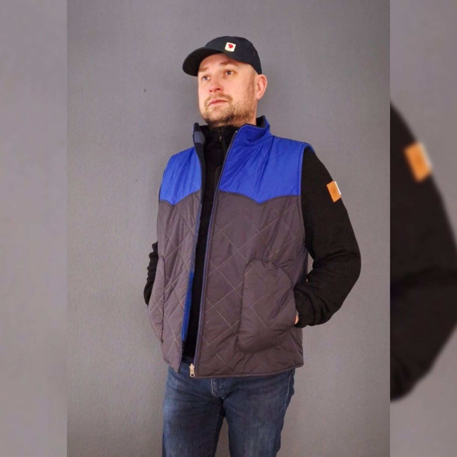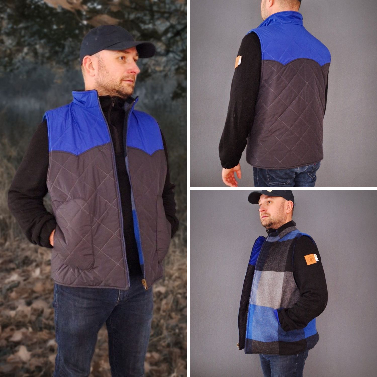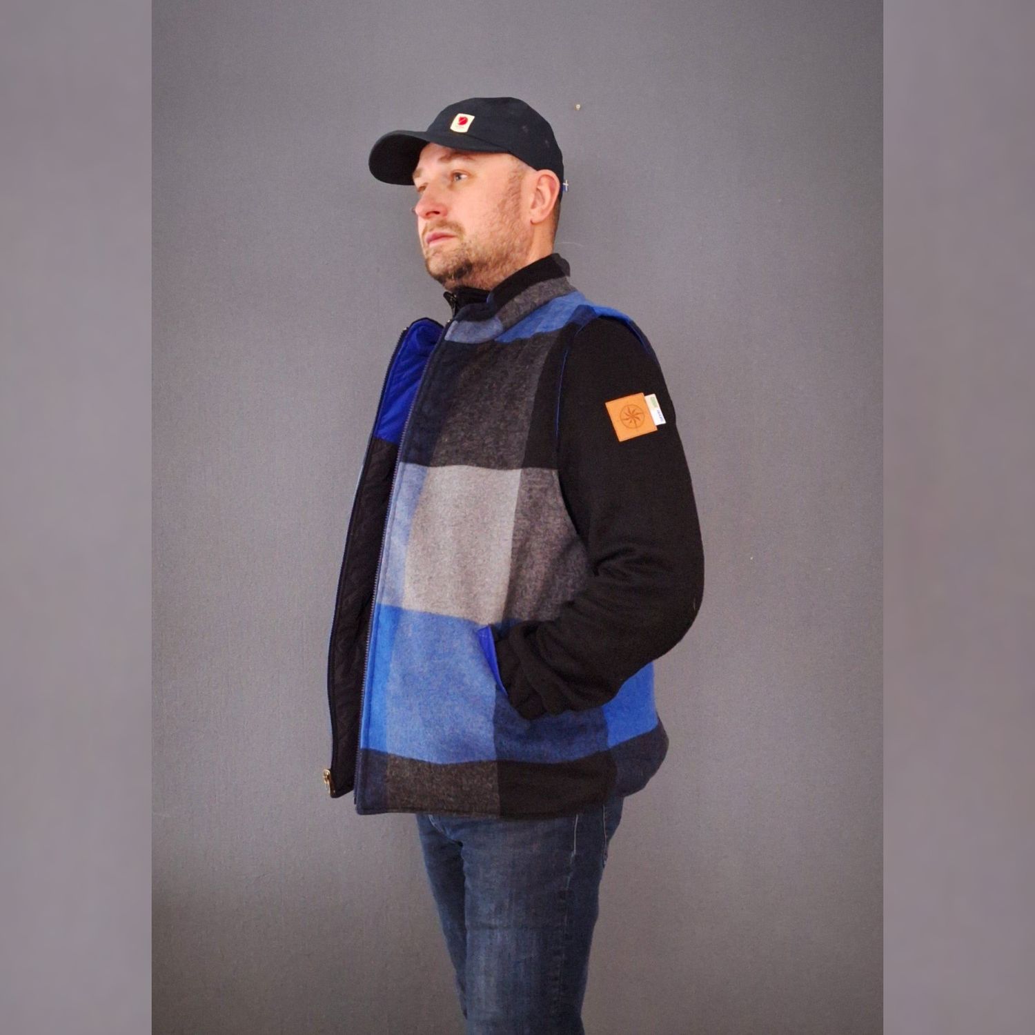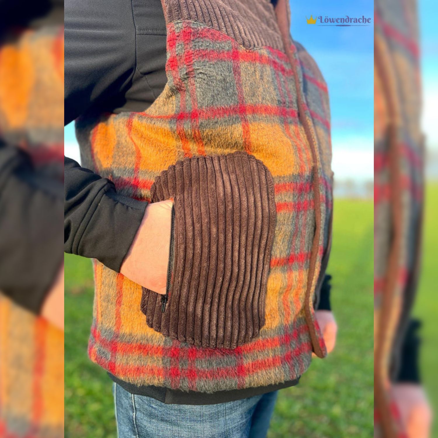 - Der Schnitt ist auf Webware ausgelegt. Die Weste besteht aus 3 Schichten: dem Oberstoff möglichst strapazierfähige und wasserabweisende Outdoorstoffe (synthetische Gewebe). Der Isolierung z.B. Volumenvlies für mitteleuropäischen Winter (Thinsulate P80) und dem Futterstoff Wollmischgewebe, Teddy, Fleece, ect.
