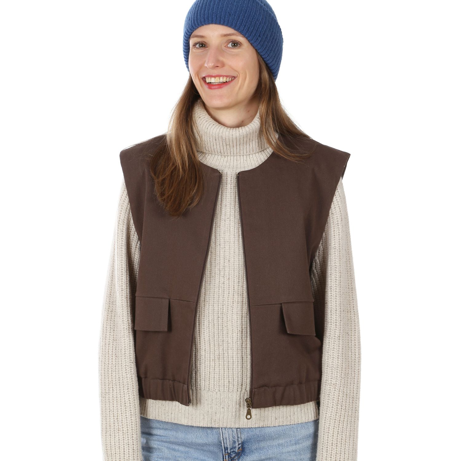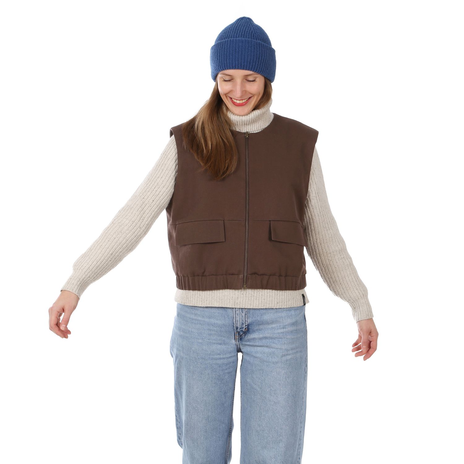 Die Weste FRAU BORA ist das perfekte Teil für alle, die einen coolen, modernen Look lieben. Kurz geschnitten und mit breiten Schultern sorgt sie für einen angesagten Oversized-Vibe, der jedes Outfit sofort aufwertet. Der Reißverschluss macht FRAU BORA unkompliziert und alltagstauglich, während die eingearbeiteten Taschen mit Klappen nicht nur praktisch sind, sondern auch den coolen Utility-Style unterstreichen. Dank Futter trägt sich die Weste angenehm und bekommt eine hochwertige Verarbeitung.