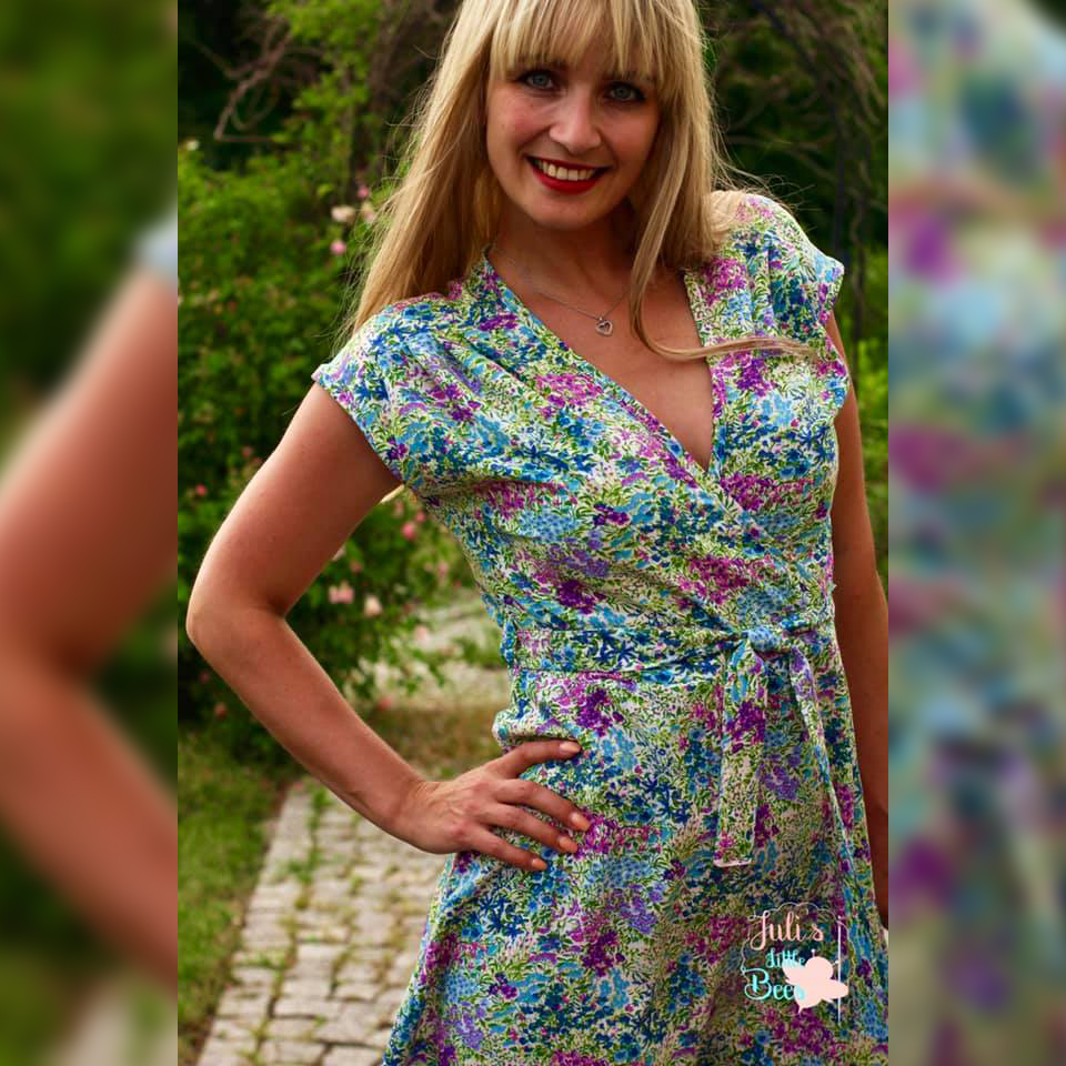 Gerda ist ein Schnittmuster für ein sommerliches Damenkleid aus Webware im traumhaften Wickel-Look.