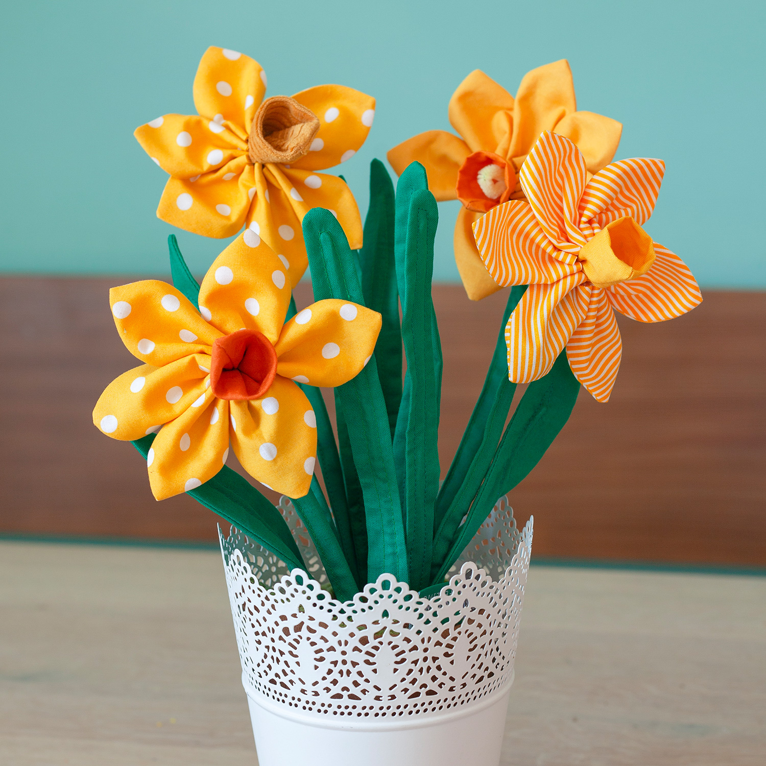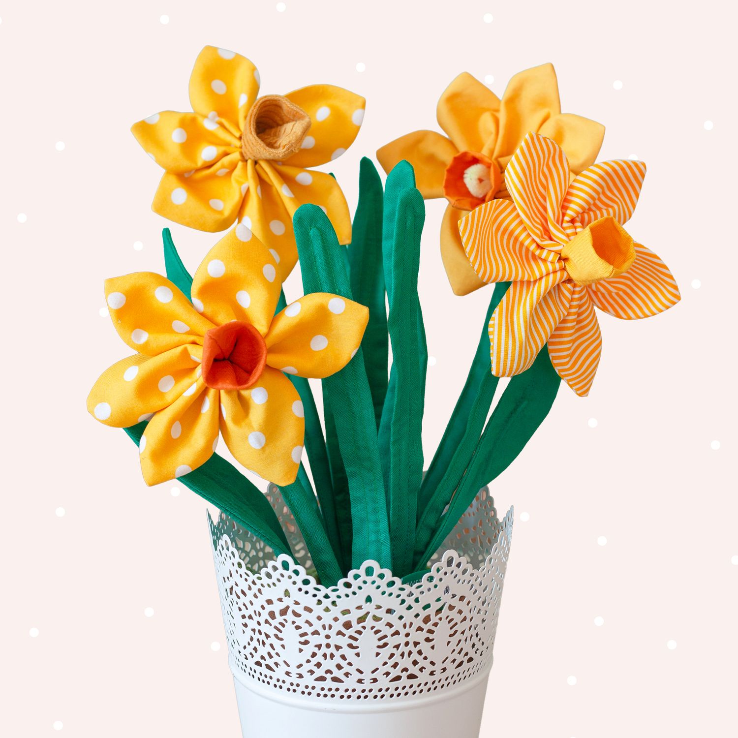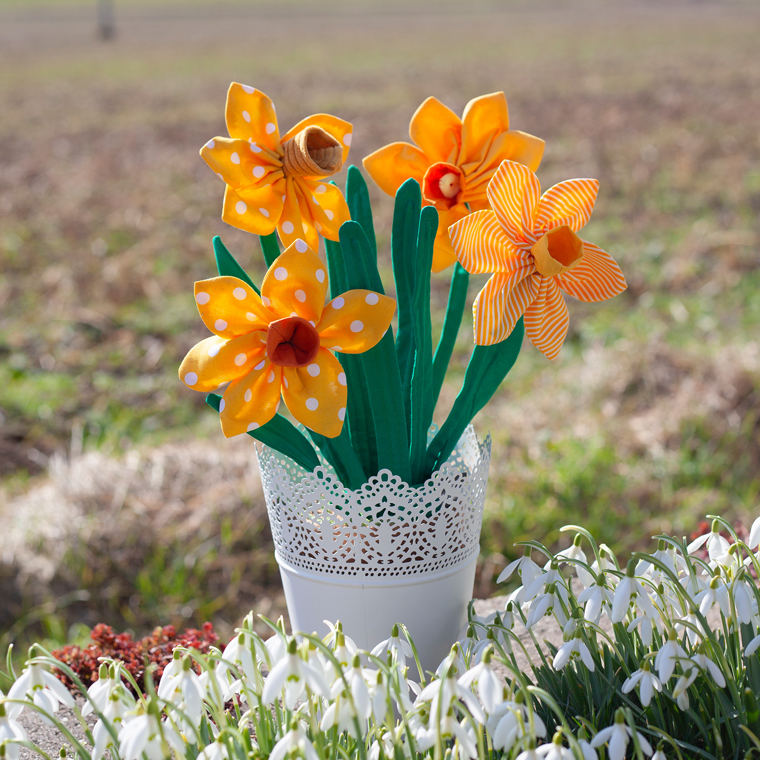 Frieda Osterglocke greift genau dieses Erscheinungsbild in Stoffform auf und ist eine dekorative Stoffblume zum Nähen, Verschenken und Dekorieren.